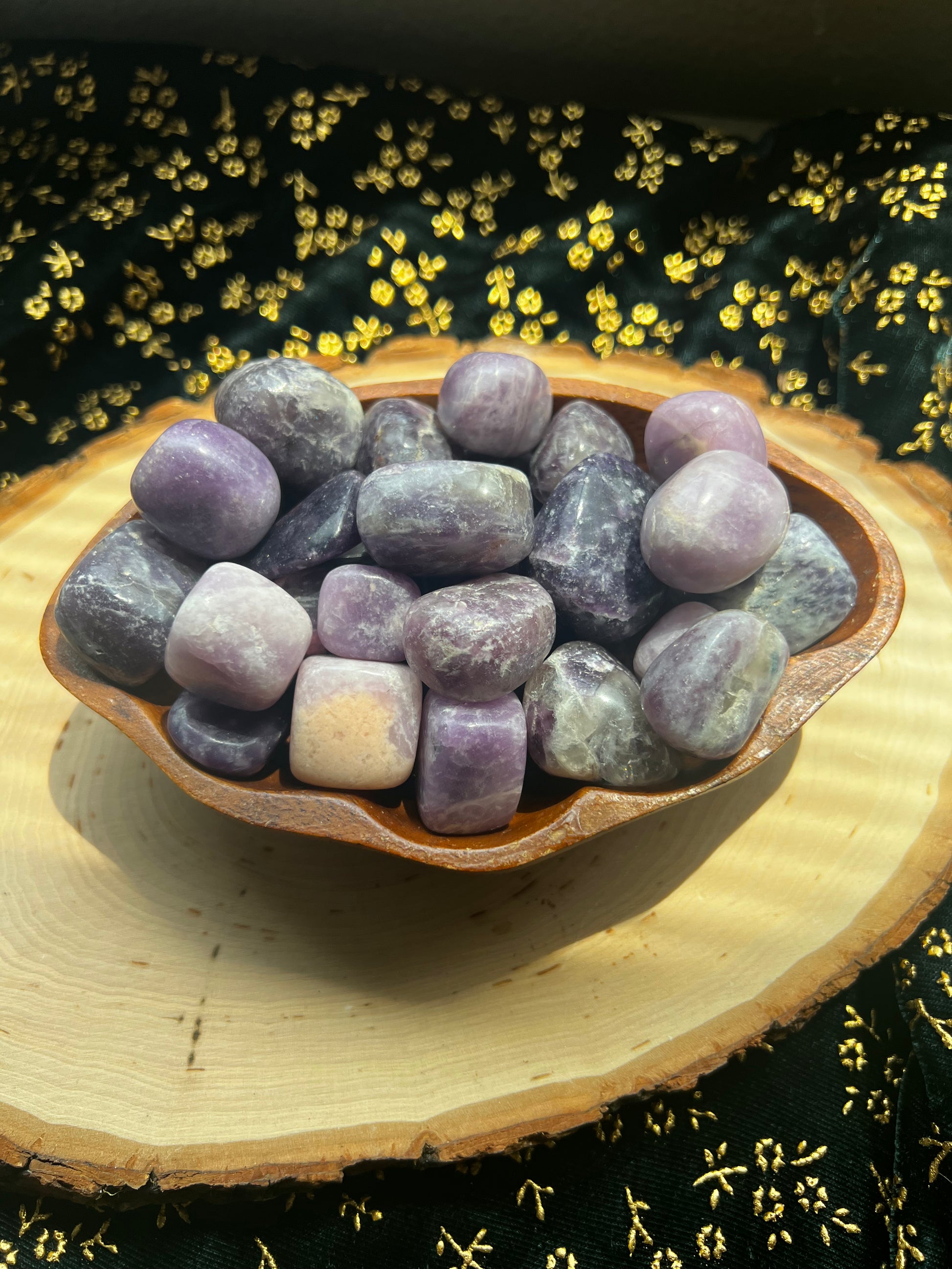 Lepidolite is a gentle, lavender-toned stone known for its high lithium content, which offers natural soothing and stress relief. It helps stabilize mood, quiet anxious thoughts, and promote restful sleep. This stone is ideal for those working through emotional overwhelm or seeking peace during transitions.
