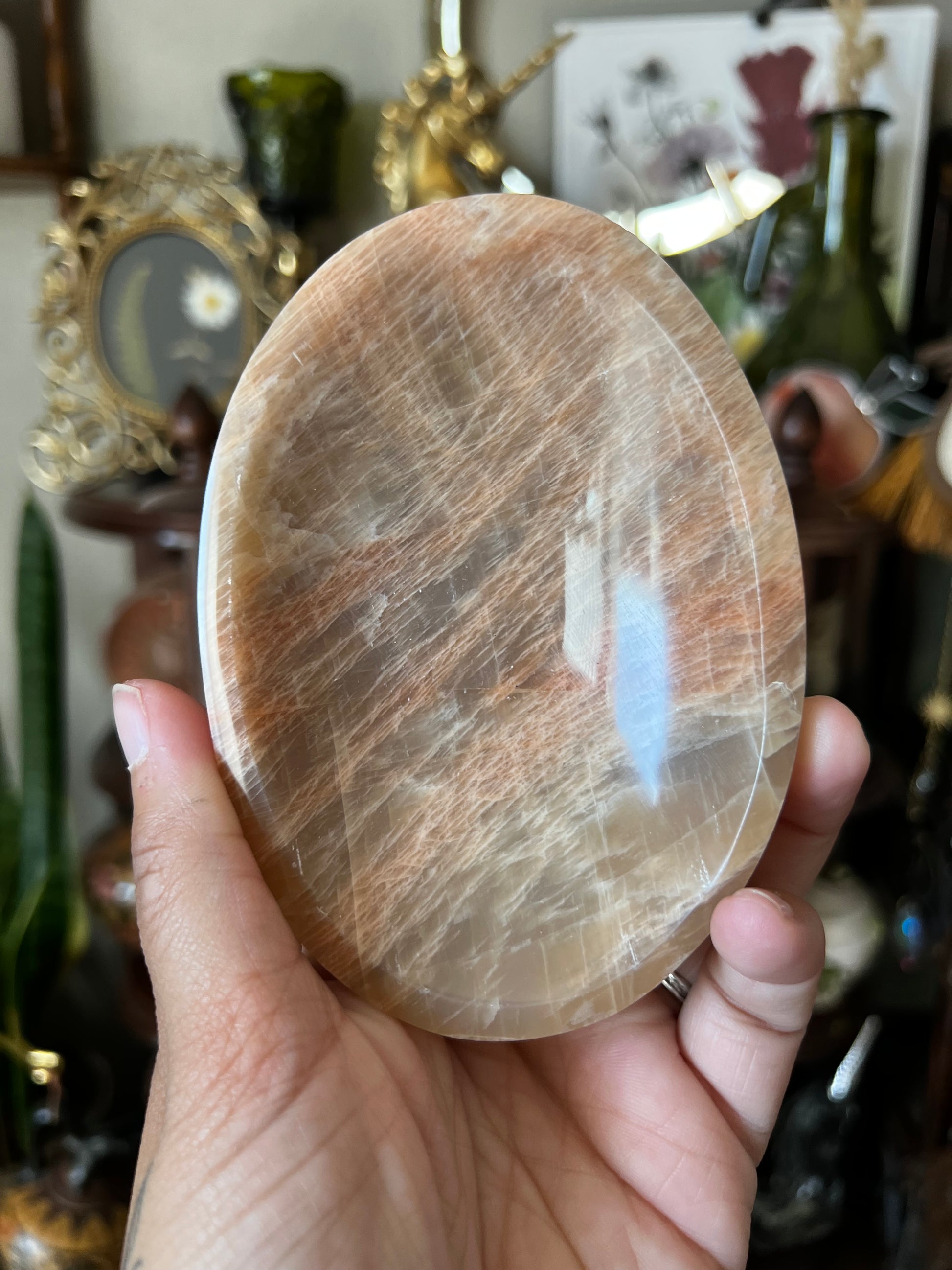 Peach Moonstone carries a gentle, nurturing energy that soothes emotional tension and supports self-love. It’s often associated with new beginnings, compassion, and divine feminine energy.